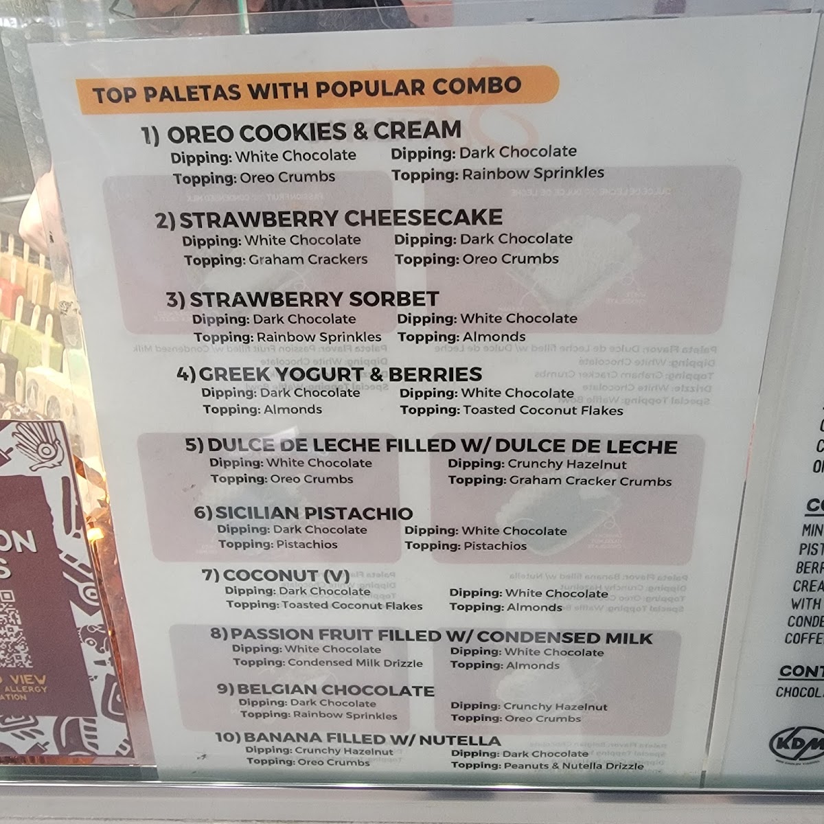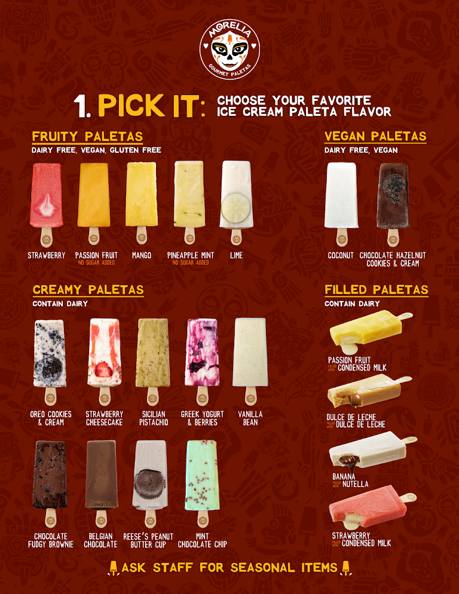 Introducing the menu at Morelia Ice Cream Paletas - Upper East Side is a vibrant journey into the world of paletas that you don’t want to miss. Located at 1435 1st Ave, this charming establishment offers a splendid array of flavors—think Strawberry, Mango, and Raspberry Sorbets, all vegan, dairy-free, gluten-free, and kosher for guilt-free indulgence.